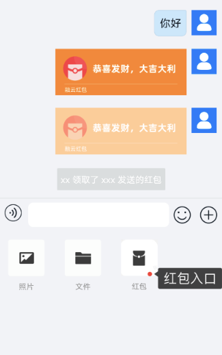 Users send red packets (real currency, virtual currency, points, etc.) to specified friends in one-to-one chat/group chat conversations. Senders and receivers can clearly perceive whether the red packet has been claimed (unclaimed, claimed).