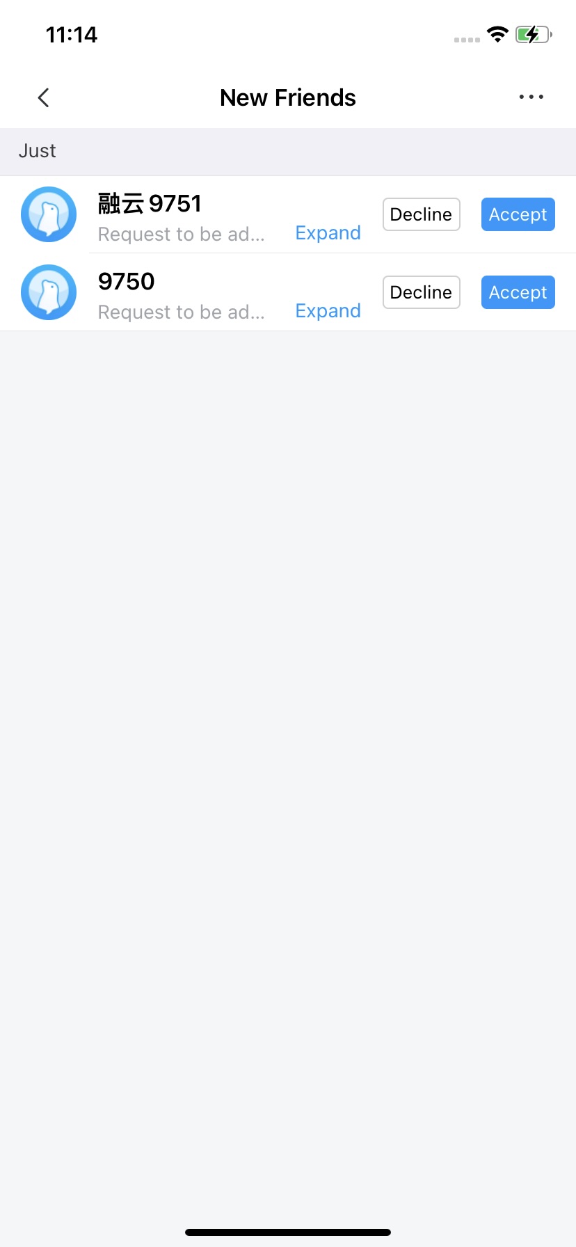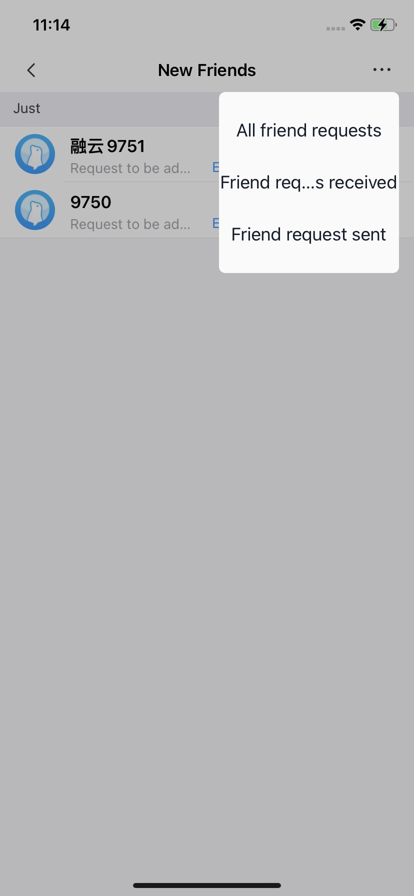 The friend request list page displays all friend requests on the current user's device. Upon entering this page, the IMKit SDK automatically retrieves friend request data from the database and sorts it chronologically.
