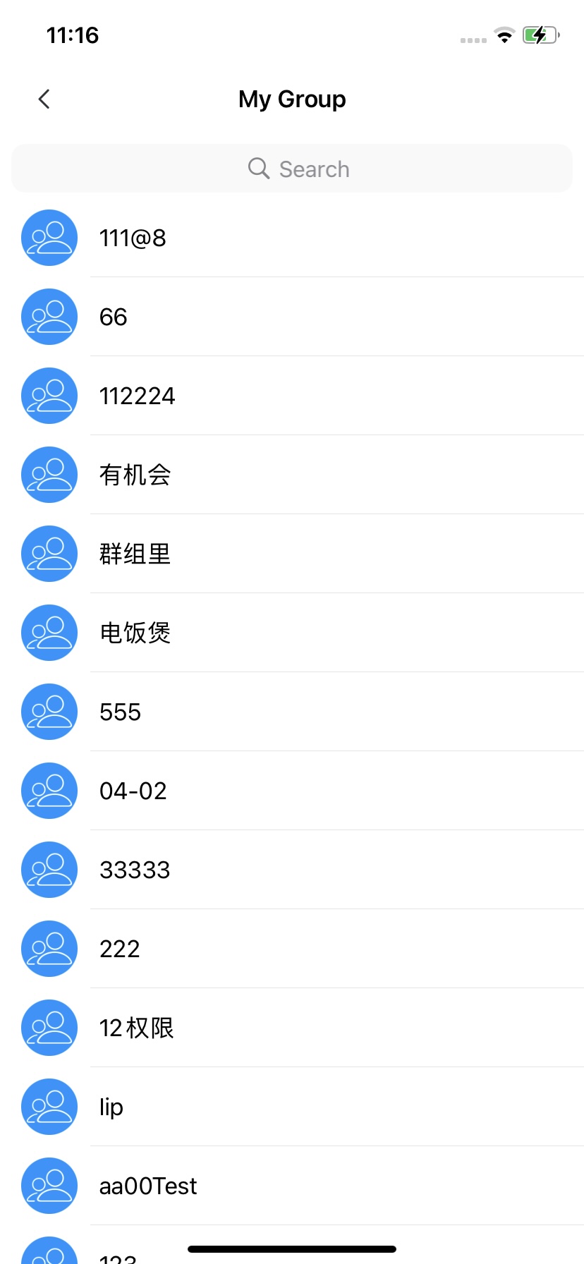 The My Groups page displays all groups the current user has joined. Upon entering this page, the IMKit SDK automatically retrieves group information from the database.
